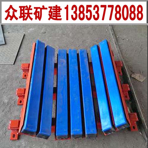 緩沖床主要用于替代緩沖托輥,對皮帶機輸送帶起保護作用,延長(cháng)輸送帶的使用壽命。緩沖床是由緩沖條和支架組成的,緩沖條主要應用優(yōu)良的高彈性特種橡膠層充分吸收物料下落時(shí)的沖擊力,大大降低了物料下落時(shí)對輸送帶的沖擊,真正改善物料點(diǎn)的受力狀況,采用特殊UHMW高分子聚乙烯表面,使輸送帶與緩沖條之間摩擦系數降到最低,且耐磨性好。緩沖床的使用保證了輸送帶的面與面的接觸,受力均勻,有效的防止了由于托輥斷裂脫落造成的皮帶縱向撕裂,同時(shí)大大降低了皮帶被銳器或尖銳物料穿透后縱向撕裂的概率。